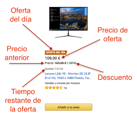 En el producto ofertado siempre encontrarás el precio original en Amazon.es, el descuento promocional y el precio final.